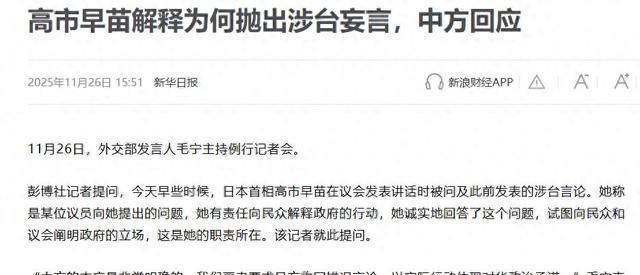 前言       11�日,日本外相还带着兴师问罪的架势上门。       12天后,同一个人低声下气求中方支招,态度转变堪称外交变脸秀。       日本为何突然服软?背后真相是什么?       12天判若两人!日本外相上演川剧变脸       日本现在的变脸速度可是比翻书还要快,高市早苗凭一己之力,成功把自己弄到两面为难的局势中。       高市早苗大家都知道,前两天中美双方通完电话后,特朗普就第一时间命令高市早苗接听自己的电话。       在接完特朗普的电话后,高市表现得依旧十分强硬,宣称美日还是"亲密朋友"。       可被问到通话过程中都聊了什么时,高市早苗却拒绝透露,这欲盖弥彰的动作显然是在刻意隐瞒着什么。       高市嘴硬的特点是不会改变的,不过很快,她的实际行动就出卖了她。       在与特朗普通过电话后,高市早苗在对华态度上明显开始出现重大转变,不�小时,日方高管便紧急会见了中方驻日大使。       要知道,12天前两人刚刚见过面,这次日方高官的态度可是急转直下。       不再颐指气使,而是低声下气求中国大使支招,究竟怎么做才能让中方消气。       11�号上午,日本高官,副外相船越健裕便立刻在外务省会晤了中国驻日本大使吴江浩。       对��日的首次交锋,日方的姿态堪称上演了一场"外交变脸秀"。       值得一说的是,此前日媒在报道中基本都是使用日方"召见"中国大使这样的说法,展现出十分强硬的态度。       而�天前,日方更像是兴师问罪一样的找上中国,对中方领事薛剑的"斩首论"帖子大做文章,仿佛自己才是受委屈的那一方。       但这次,船越健裕却主动低头,首先日方没有采用"召见"这样的强硬词汇。       而是用"会晤"这种不会激化矛盾的词语,而船越健裕对中方抛出的严正交涉、强烈抗议照单全收,一句辩解都不敢有。       特朗�分钟通话,让日本彻底慌了       日本为什么突然"软"了?答案其实很简单,特朗普的那通电话让高市早苗认清了现在的局势。       对于日方来说,他们并不是突然想通了不能干涉中国内政,要尊重中国核心利益。       相反,他们只是怕事态真的升级到日方无法承受下场的局面,而这场紧急会面显然也绕不开高市早苗那番戳碰中国红线的涉台言论。       日方的目的也很明确,就是想寻求中方大使的帮助,并讨论应对措施,众所周知,自从高市早苗放出涉台不当言论后,中方的反制来的又快又狠。       11�日,外交部提醒中国公民近期避免前往日本,随后,文化和旅游部、教育部等多个部门也发布了类似提醒。       日本旅游业原本期待复苏,这下遭遇重击,除此之外,日本水产品进口停了,外交层面的谴责那是一环扣一环。       更让日方慌乱的,是在中日局势日益激化的背景下,特朗普还打了一通高市早苗连提内容都不敢提的电话。       这种情况对日方来讲绝对是相当不利,日方倘若继续强撑,最后也只会惹火烧身。       于是才急着找到中方大使商量,看中方大使能不能出点招让中日关系变得不再那么紧张。       近期,中日双边贸易额出现了明显下滑。       这对高度依赖对中出口的日本制造业来说,绝对是个不小的打击,高市早苗现在还真是有点进退两难。       一边是经济现实,如果继续硬刚中国,那面临的将会是更严重的经济损失和社会不稳定性。       作为日本自民党右翼阵营里响当当的"旗手级人物",甚至被不少保守派视为"精神领袖","对华强硬"就是高市早苗最核心的政治标签。       正因如此,她才会得到右翼阵营的支持,在这些极右翼眼中,高市早苗敢对中国说话,同样也敢触碰中国敏感问题。       这就是她最明显的价值,倘若此刻高市早苗对中方低头,那一直以来支持她的右翼势力将会毫不犹豫的撤销对她的所有支持。       毕竟日本人的翻脸速度我们如今也是知晓的差不多了,所以一旦这么做了,高市早苗未来很有可能再也无法再日本政坛中立足。       中方两句话让日本无言以对       现在的局势已经很明显,高市早苗无论是撤回涉台不当言论,还是硬着头皮死扛到底,等待着她的都是足以终结政治生命的毁灭性后果。       从高市早苗把涉台妄言说成"履职本分",到日高官低声下气求中方大使支招,再到中方直接戳破模糊把戏。       这一连串的事,其实都绕着同一个核心--台湾,是中国不可分割的一部分,这是中国的核心主权,容不得半分挑衅。       就在日高官低头求见的同一天,中国外交部的例行记者会上,发言人毛宁直接戳破了日方的把戏。       面对记者问高市早苗的辩解,毛宁的态度很明确:"中方严肃要求日方收回错误言论,以实际行动体现对华政治承诺。"       这话直接跳过了"辩解"的环节,要的是实打实的纠错。       紧接着有人问日本内阁刚通过的答辩书,毛宁更是一针见血地指出问题。       日方在答辩书里还在说"一贯立场""立场未变",可这个"一贯立场"到底是什么?有没有坚持一个中国原则?       这些核心问题一个都没说清,只拿模糊的概念蒙混,根本行不通。       更重要的是,毛宁还点出了日方的"得寸进尺",答辩书里居然还在妄议台湾问题,干涉中国内政。       她当场重申,台湾是中